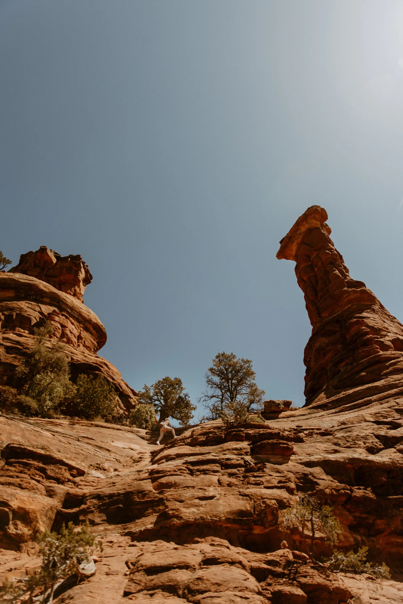 Spires of sun-struck red rocks, fringes of green forest and eye-searing azure skies